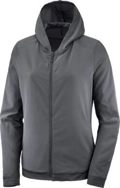 The women’s COMET FZ HOODIE by Salomon offers comfort, durability and stretch in one lightweight hoodie. Soft and quick-drying, it offers 4-way stretch and full freedom of movement. Cozy up with the hood and roomy hand pockets. Slip it on for a hike, your warmup, or simply strolling around town.