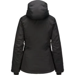 The women’s FANTASY Jacket is a warm ski jacket with weather and element protection that succeeds on the slopes or in the city. Waterproof and breathable AdvancedSkin Dry fabric holds 100 grams of synthetic insulation, staying dry even if wet. The detachable hood is adjustable, and articulated sleeves and adjustable cuffs and hem secure an individual fit. The goggle wipe and powder skirt are ski-ready.