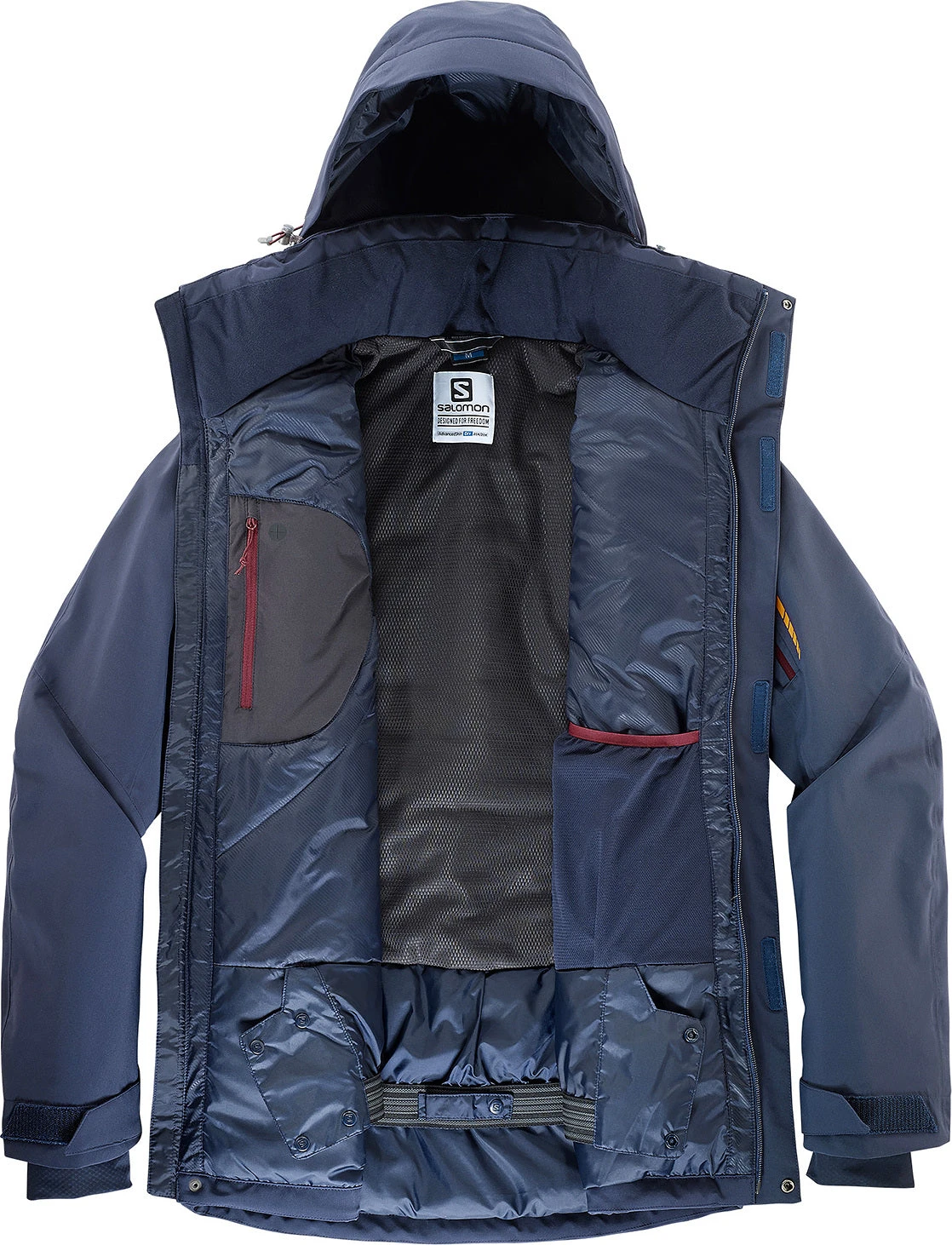 The men’s BRILLIANT Jacket is a weatherproof shell for active days on the slopes. Motion Fit is Salomon’s stretch-articulated technology for superior range of motion. A four-way stretch body with a moisture-wicking stretch liner keep you dry and comfortable. 100 grams of synthetic insulation retains heat even when wet. Six pockets, waterproof zippers and fully sealed seams make the Brilliant your only go-to.