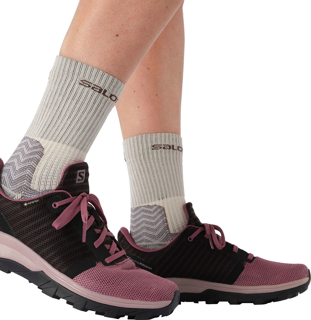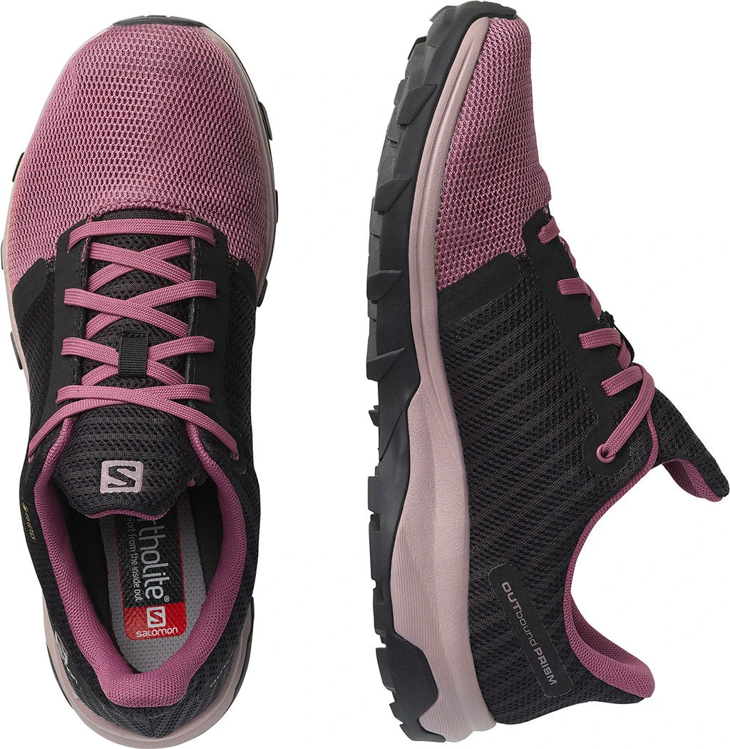 • S.Café® recycled sockliner cover: Based on innovative S.Café® technology, this sockliner cover is made from coffee grounds, which are great at managing moisture and controlling odor|-|Laissez L’outbound Prism GTX W vous faire découvrir de nouveaux terrains de jeu. Cette chaussure outdoor polyvalente s’adapte aisément à toutes les situations, que vous exploriez la ville ou les sentiers de montagne. Avec son mesh respirant, ses matières douces, sa membrane imperméable Gore-Tex et ses lignes modernes, elle est toujours prête pour l’aventure. Et vous.