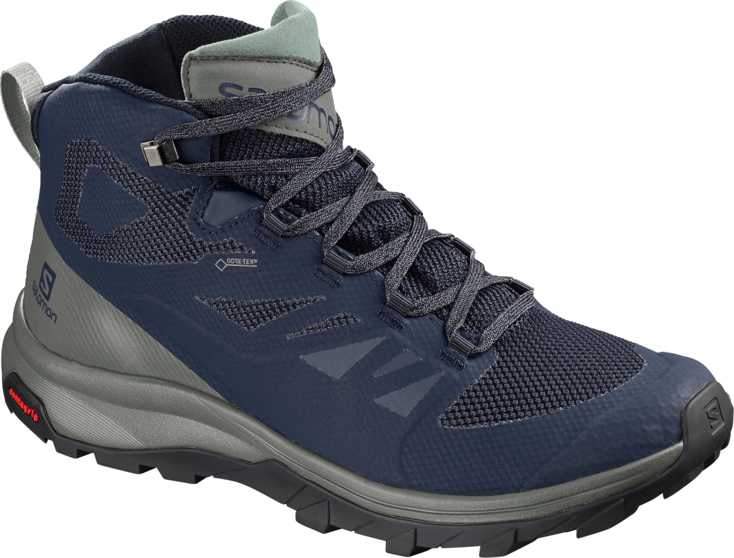 The sleek and stylish Men’s OUTline MID GTX Hiking Shoes from Salomon are ideally suited for adventure, with lightweight flexibility like a running shoe, but enough grip and waterproof protection for any trail. Built with a running last and integrated features, this sleek but technical shoe looks as light and agile as it feels. Lightweight and engineered with great flexibility and foothold, OUTline is as comfortable as a running shoe. Mid-height, 5mm deep lugs on the outsole, protective toe cap and a full GORE-TEX membrane offer all the outdoor adventure protection you need.