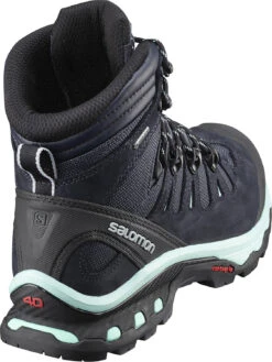 The women’s QUEST 4D 3 GTX hiking boot is one of the lightest backpacking boots around. A High Traction Contagrip outsole features a better-biting lug design. Running shoe tech informs the Advanced 4D Chassis, with more forefoot flexion and fatigue-fighting guidance. Dual-density EVA gives the midsole superior cushioning. The GORE-TEX Performance Comfort Footwear membrane keeps things dry inside and out. Ortholite and an EVA moulded footbed make for a cushioned sockliner. Heel Strap and Lace Locker technologies provide a superior fit. Textile and nubuck leather combine for a rugged-yet-lightweight upper for extended comfort.