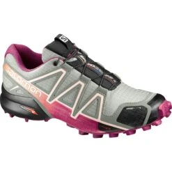 The women’s Speedcross 4 CS is the 4th edition of a trail running icon, created for runners who embrace damp weather and prefer muddy trails to city sidewalks. This shoe has a Salomon Climashield™ membrane, protecting the foot from wet and soggy tracks. It features the aggressive Contragrip sole, which has a lug pattern designed for enhanced traction on uneven surfaces. The precise foothold gives a comfortable feel on any ground while the Sensifit construction and the patented Speedcross lace system, comfortably wrap the foot for the ultimate ride. Its water-resistant upper is made of mesh and textile for a lightweight feel and just enough protection for technical trail running.