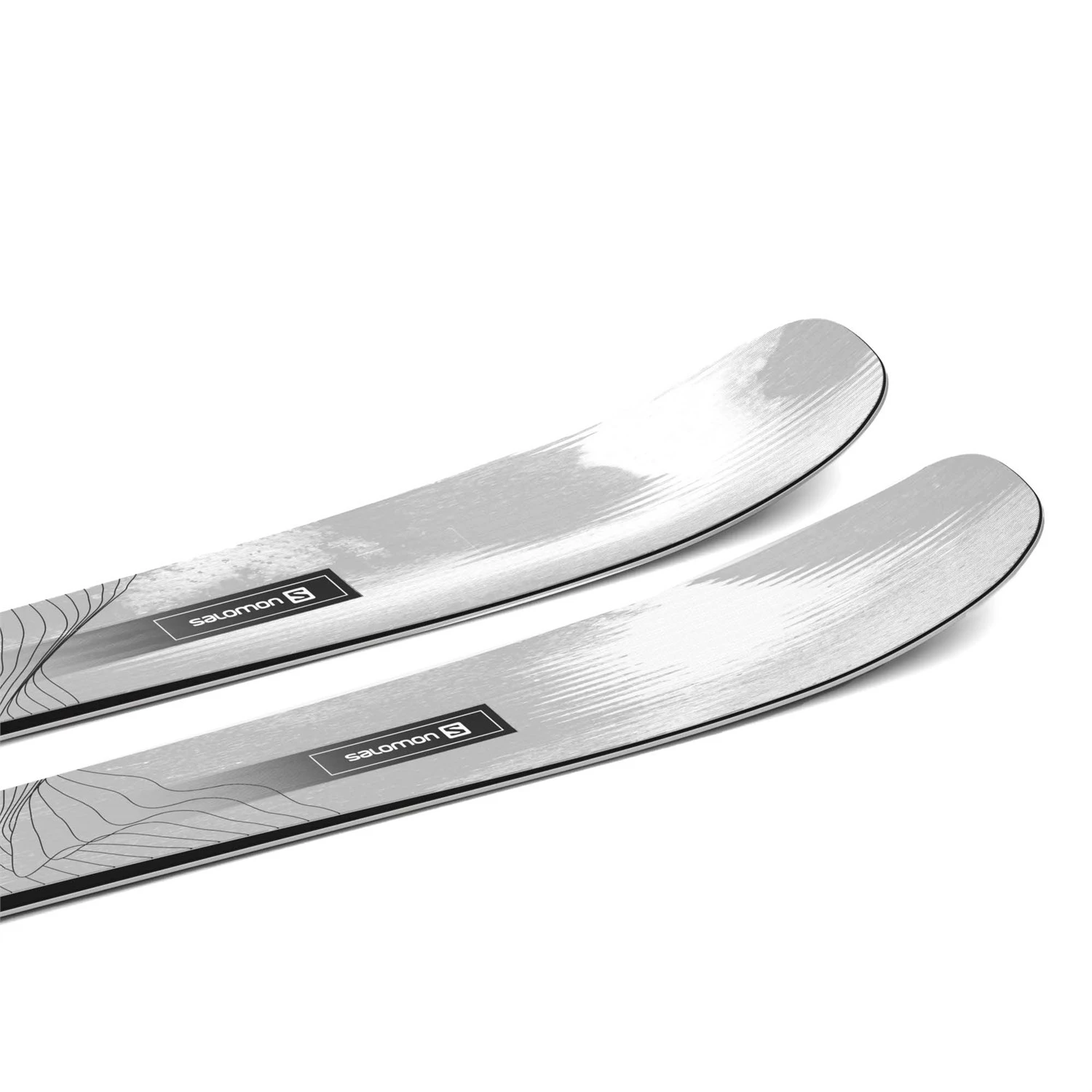 A laminate construction with full length ABS sidewalls gives extraordinary smooth ski/snow contact and great terrain adaptation. Laminated construction enables Salomon to combine optimum material layers for targeted performance.