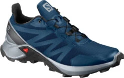 The men’s SUPERCROSS Trail Running Shoe by Salomon is made for running in all sorts of conditions and on variable trails. The Contagrip TD grabs onto mixed terrain, while Chevron lugs provide multidirectional bite and release of debris. An EnergyCell midsole softens the shock. SensiFit is the cradling fit system for a snug custom feeling around your foot. The protective toecap is a trail debris-deflecting essential. Ripstop at the upper is built for the most rugged runs, helped by a stitchless welded construction.
